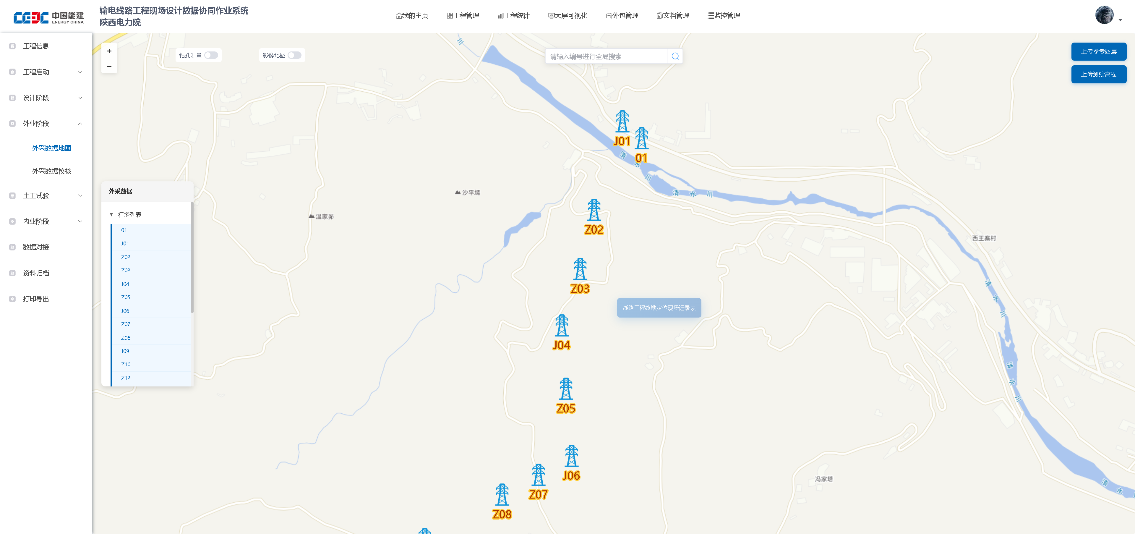项目简介:系统是电力工程前期地质勘察全流程的智能化解决方案,集成地质调查、北斗探针测量、全类型勘探(含钻探、静探、原位测试、土工试验等)、数据管理等功能,可全面查明电力杆塔线路与变电站、升压站场地的地形地貌、水文气象、灾害风险、不良地质等环境条件,精准获取地层分层、物理力学性质及钢筋混凝土腐蚀性等数据,最终通过智能化处理生成符合规范的勘察报告与成果文件,为岩土设计人员开展设施基础设计提供完整数据支撑。